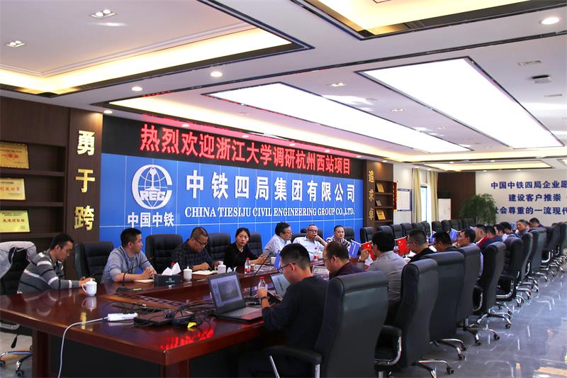 座谈会上,项目部负责人首先对杭州西站整体工程概况、项目施工进度和工艺工法等情况作了简要介绍。浙江大学超重力研究中心蒋建群教授表示浓厚兴趣,并表达了本次调研目的,随后双方围绕该调研内容依次对项目部的前期准备和建设过程中的重难点及经验和做法进行了详细探讨,并深入施工现场,进一步实地调研。