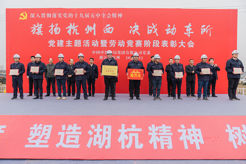 大会表彰了“决战动车所”专项劳动竞赛获奖单位、集体和个人,公司湖杭铁路五分部荣获“优胜单位”荣誉称号,项目工程部荣获“先进集体”称号,朱和林、杨慷获“先进个人”称号,林淋获“优秀共产党员”称号。