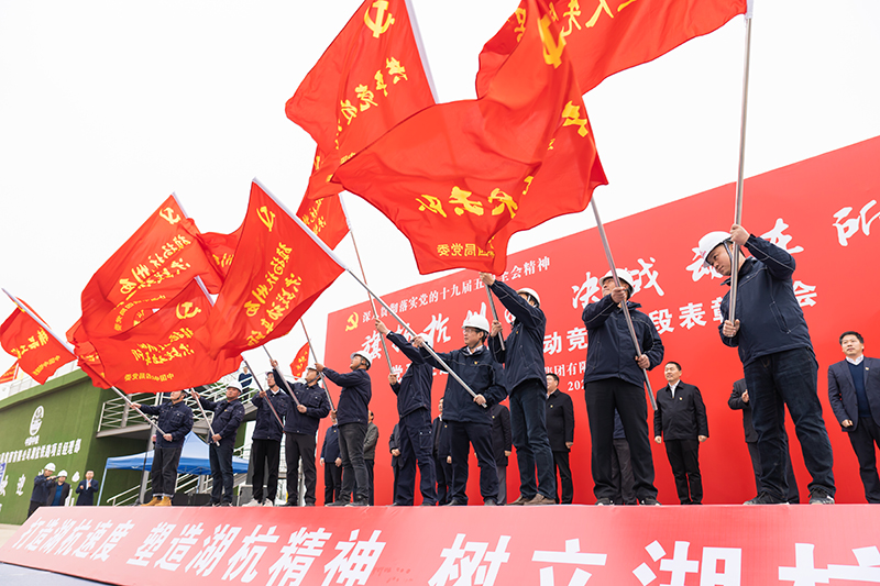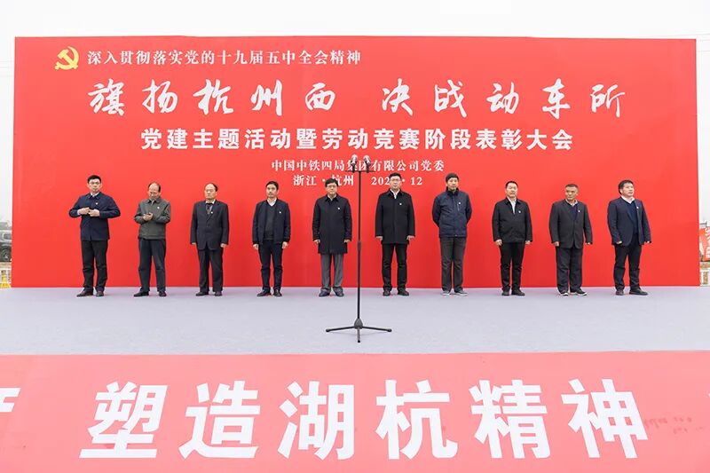 12月10日,中铁四局“旗扬杭州西、决战动车所”党建主题活动暨劳动竞赛阶段表彰大会在湖杭铁路动车所项目工地举行。