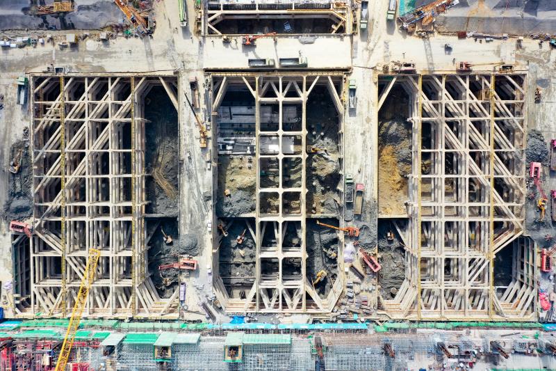 目前,项目部施工正安全平稳有序开展,施工进度满足工期总体计划安排。下一步,项目部将统筹资源快速封闭结构底板,安全高质地进行剩余承台和底板施工,尽早实现结构全部封顶。