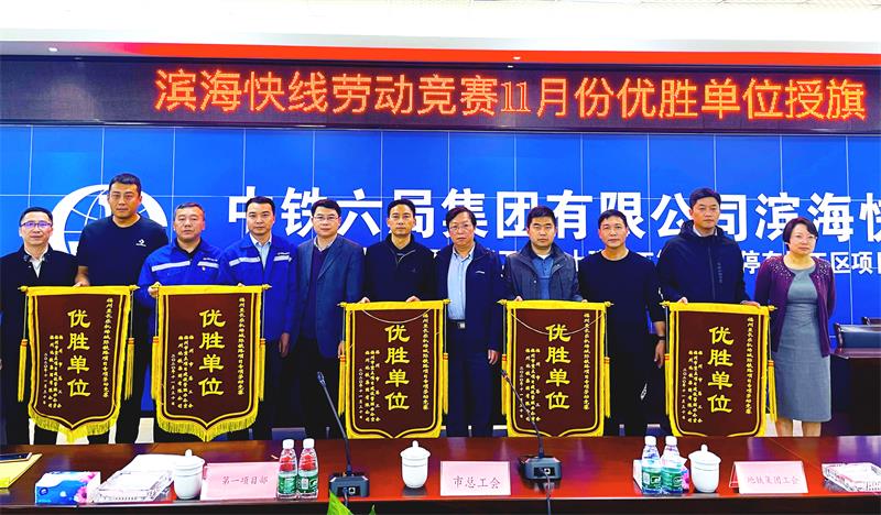 授旗仪式上,福州市总工会通报了11月福州至长乐机场城际快线项目建设计划的完成情况,公布了此次“战疫情、促发展、当好主力军”专项劳动竞赛考评结果,对滨海快线1标段4工区项目经理部施工组织管理取得的成绩给予肯定和鼓励。