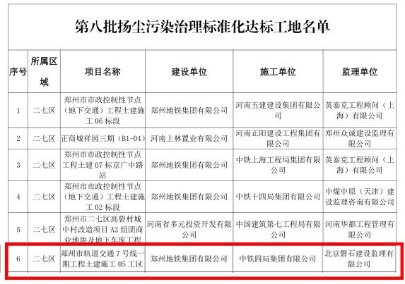 11月30日,郑州地铁7号线5工区喜获郑州市控尘办、二七区控尘办联合授予的扬尘治理绿牌工地。