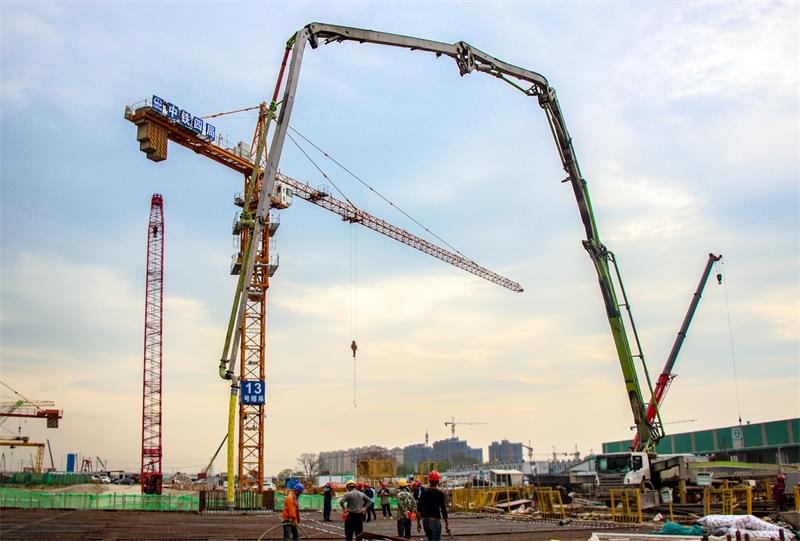 杭州西站机场快线2标工程总造价约23.22亿元,计划工期655天。该工程包含杭州西站、杭州西站-中央公园站区间。其中杭州西站站采用明挖顺筑法施工(部分盖挖法顺筑法施工),共分为A1、B1、C1三个基坑,此次浇筑完成的B-1(2)区基坑长77.2米,宽60.05米m,开挖深度22.08~25.18米,为地下二层框架结构(局部三层),站内包括杭州地铁机场轨道快线和3号线。